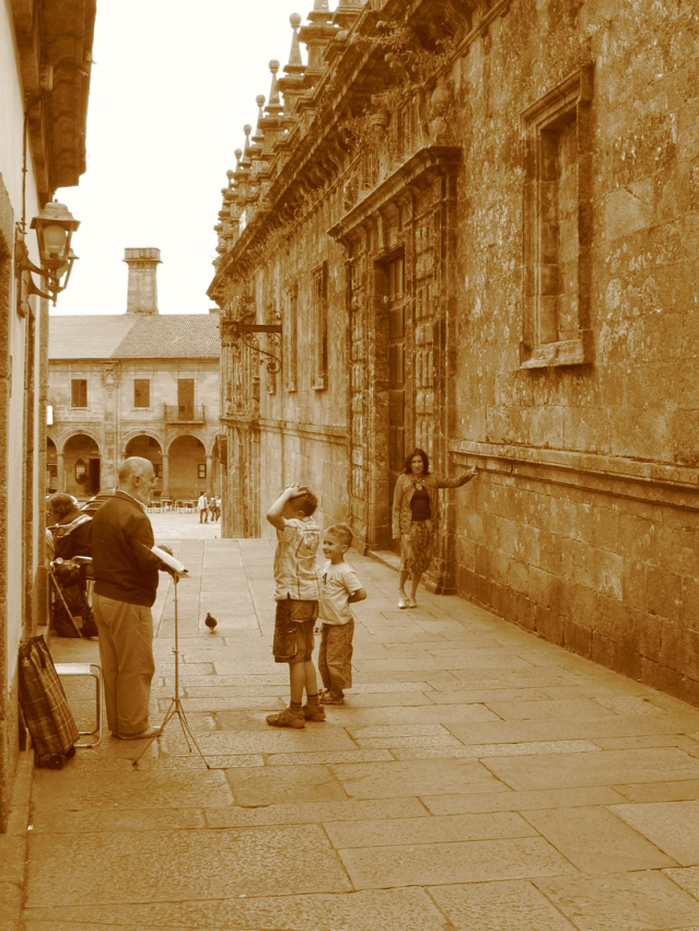 Straßenmusiker in der Nähe zur Kathedrale in Santiago de Compostela (und sie verstehen kein Wort)